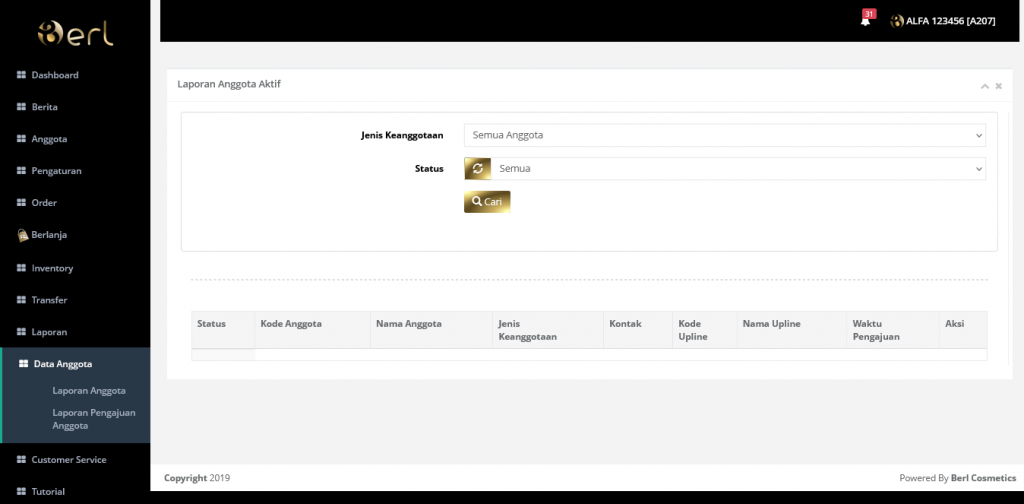 Pada menu Data Anggota, Distributor juga dapat melakukan pencarian laporan pengajuan anggota.