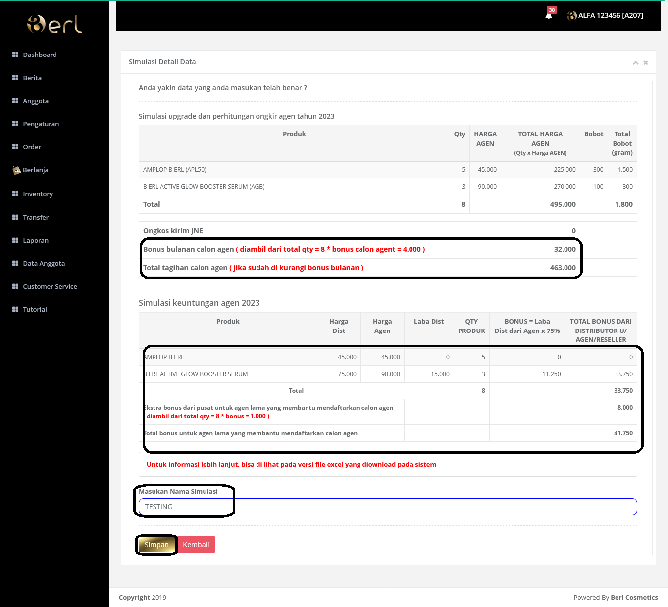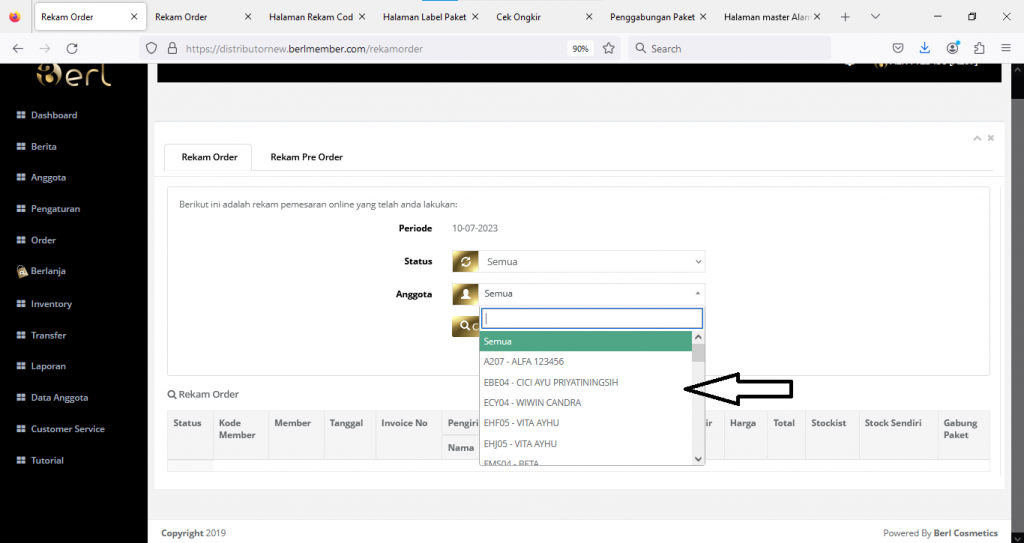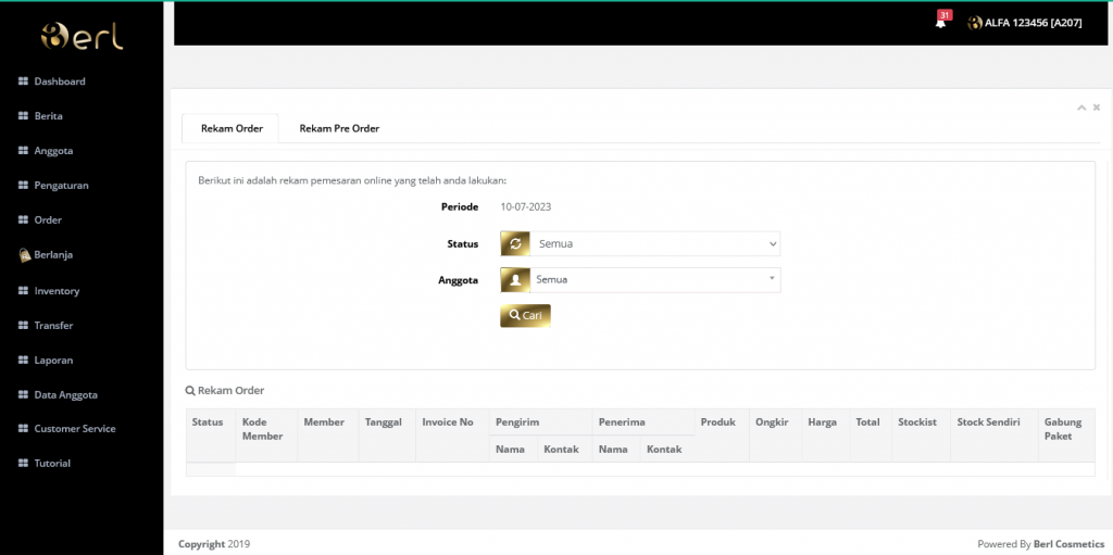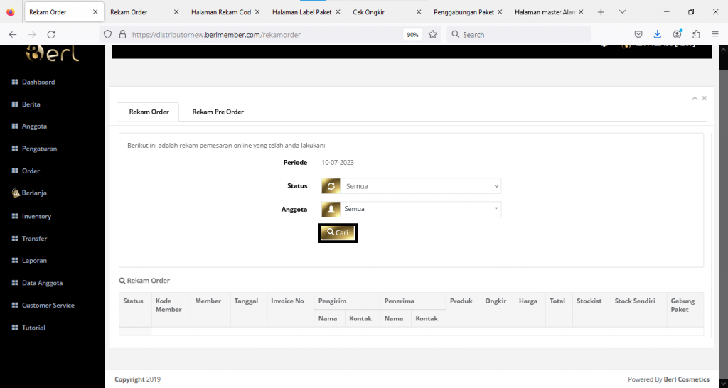 4. Akan muncul hasil pecarian laporan rekam order