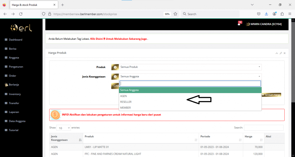 Agen dapat mencari daftar harga produk tertentu dan mendownload daftar harga produk.