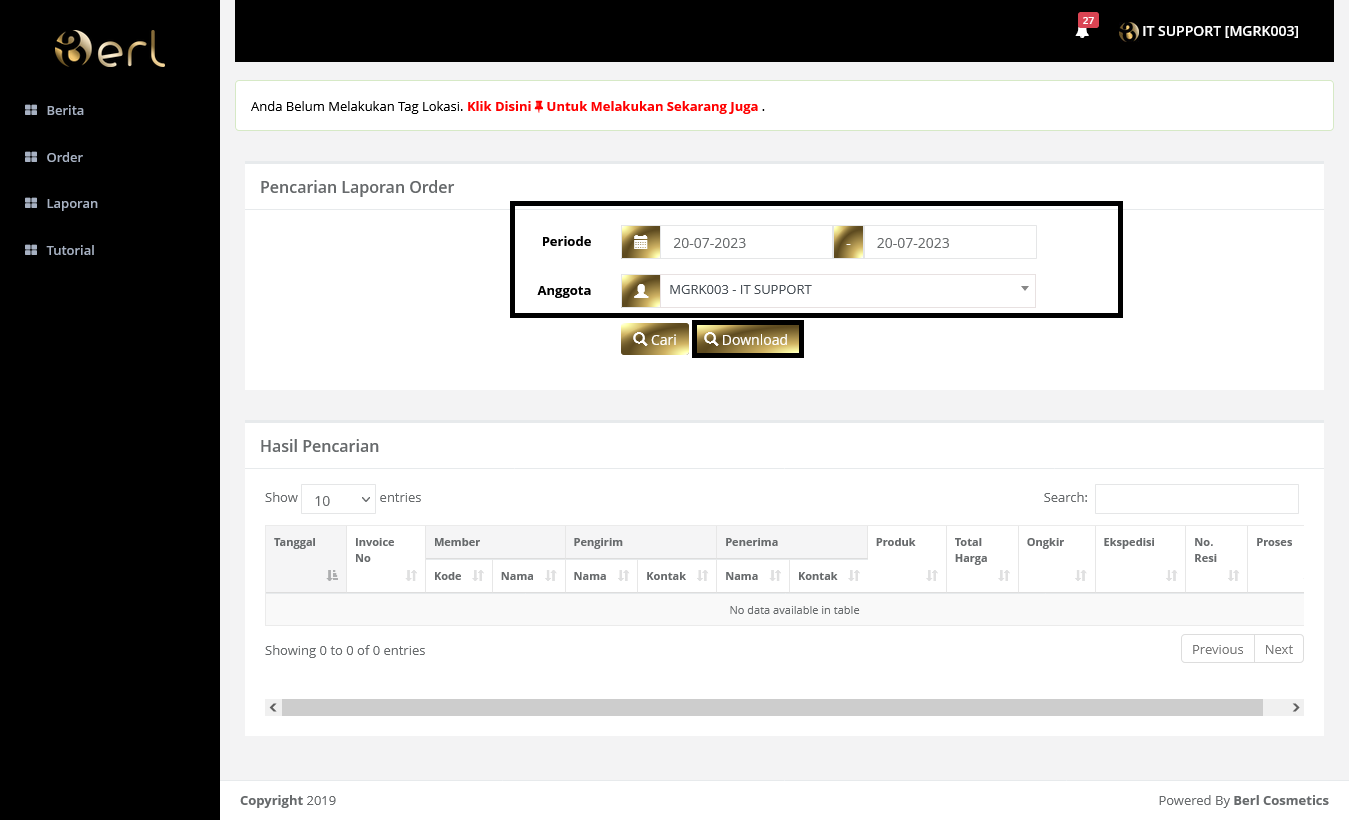- Kemudian klik tombol cari untuk melakukan pencarian dan untuk mendownload daftar harga produk, klik tombol download