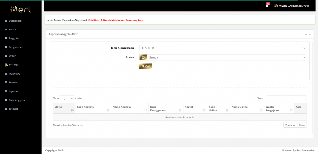 Pilih Laporan pengajuan anggota di menu Data Anggota, kemudian pilih jenis keanggotaan dan pilih status, lalu klik tombol Cari