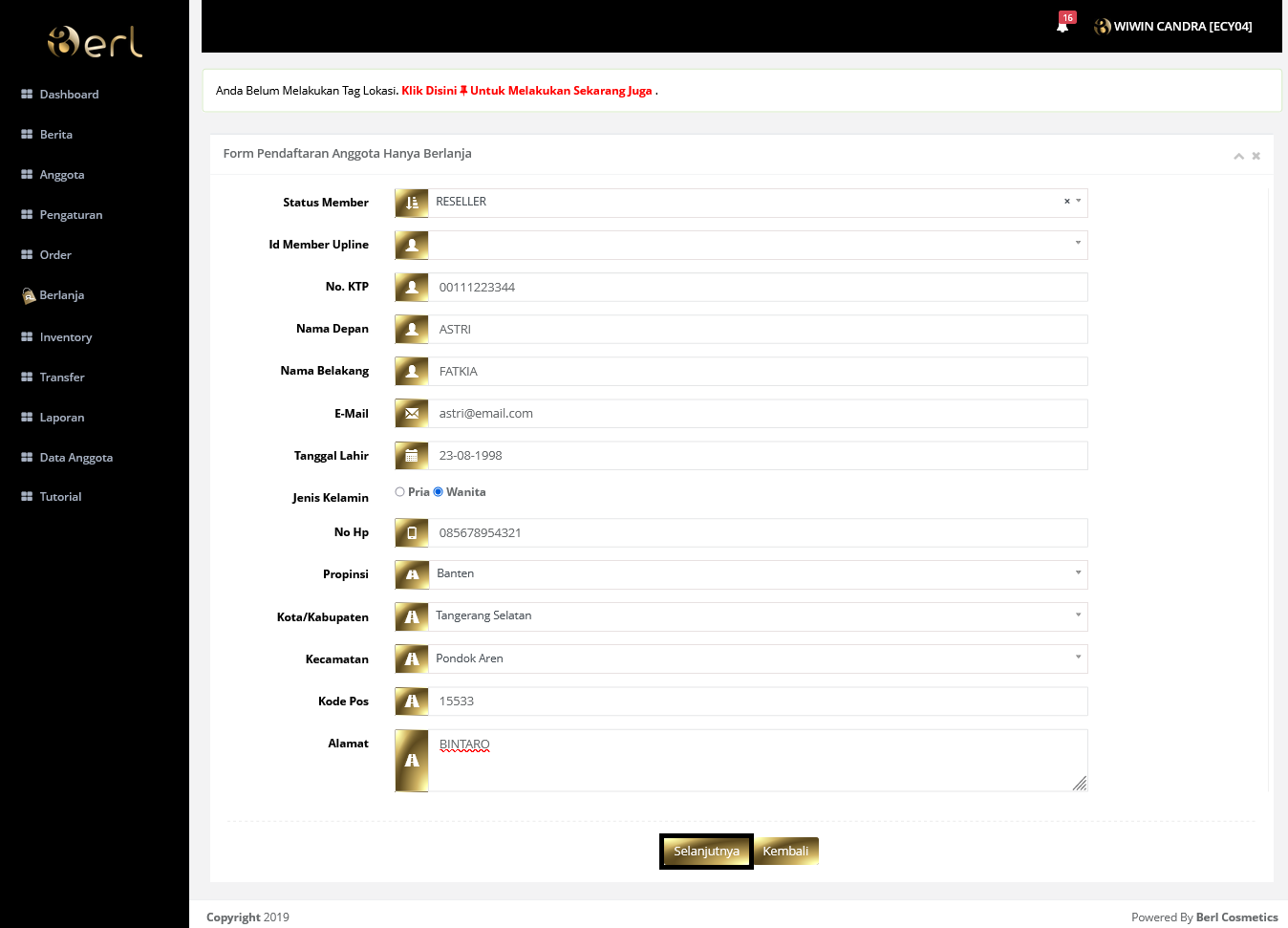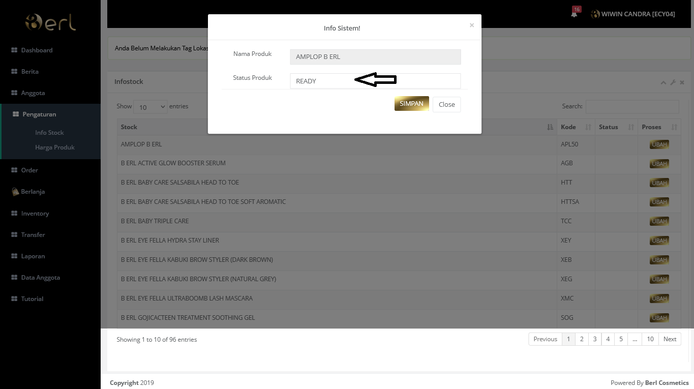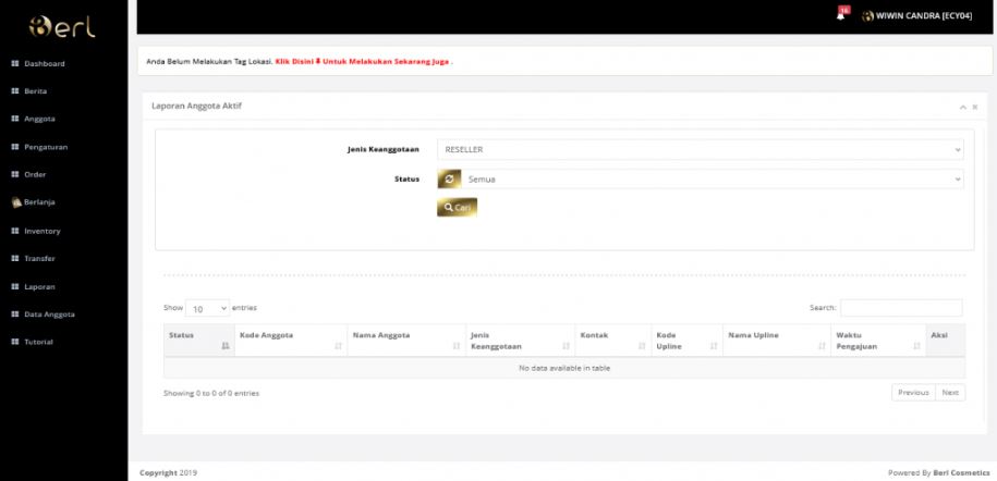 Agen juga dapat mengubah status anggota, klik Ubah Status pada kolom aksi