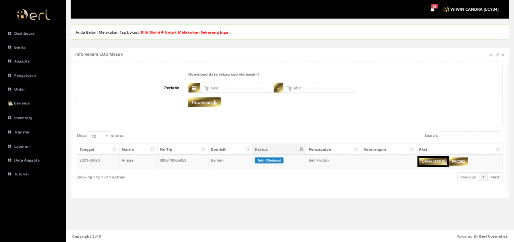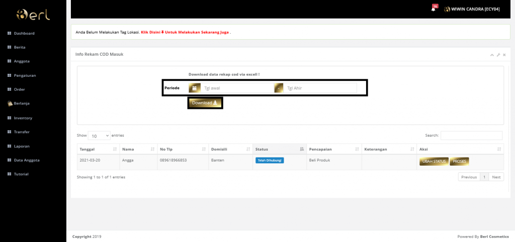 Pada Rekam COD, Agen bisa mengunduh data rekap COD