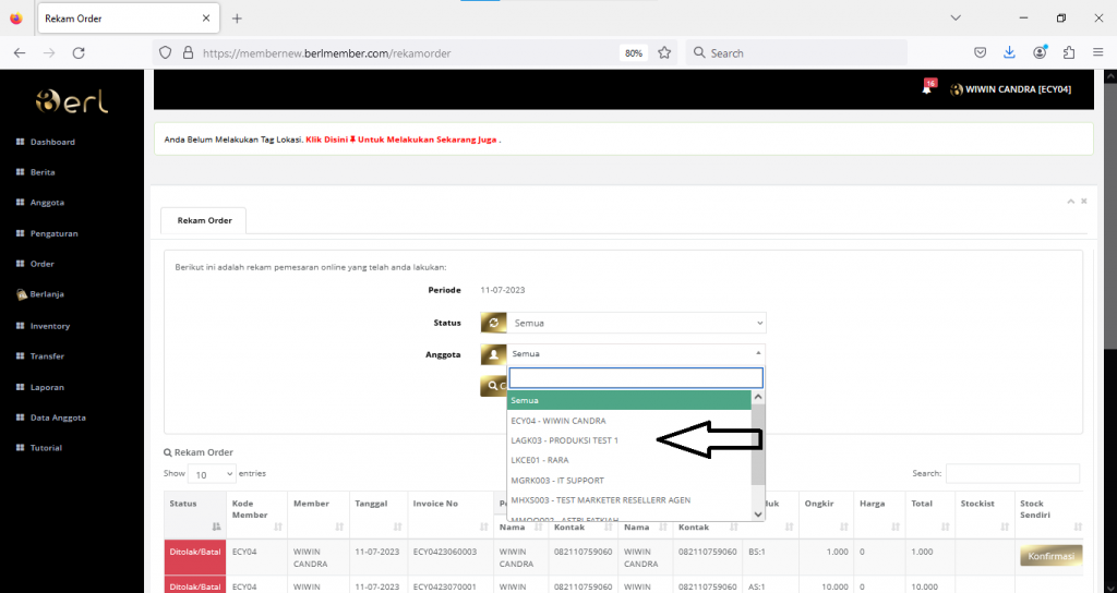Lalu, pilih anggota kemudian lakukan pencarian dengan klik tombol cari