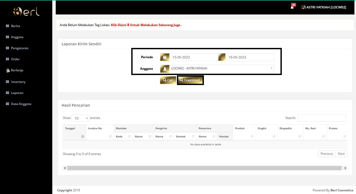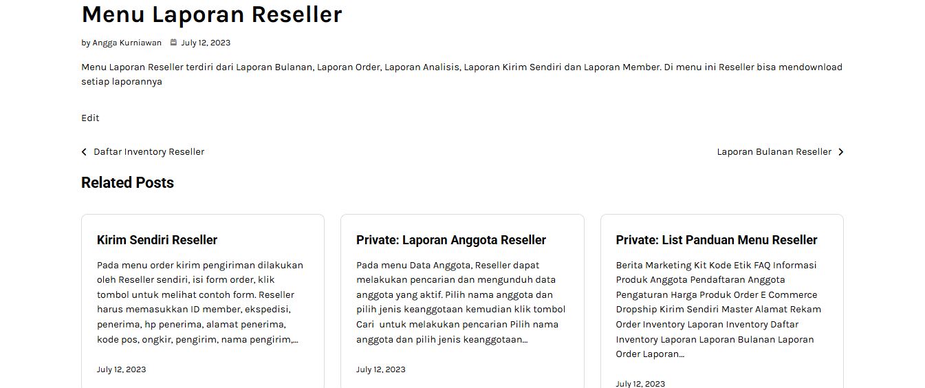 Barang keluar, Reseller menginputkan quantity barang yang keluar, stok inventory akan berkurang jika ada penjualan