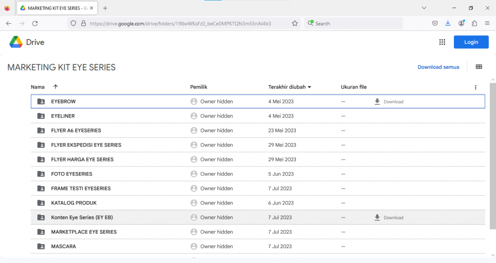 Reseller bisa mendownload Informasi Marketing Kit, pilih salah satu Marketing Kit yang akan didownload, klik bagian judul marketing kit, lalu akan diarahkan ke google drive untuk mendownload semua file pdf marketing kit tersebut.