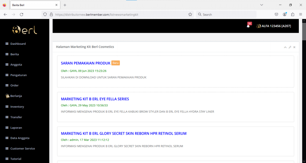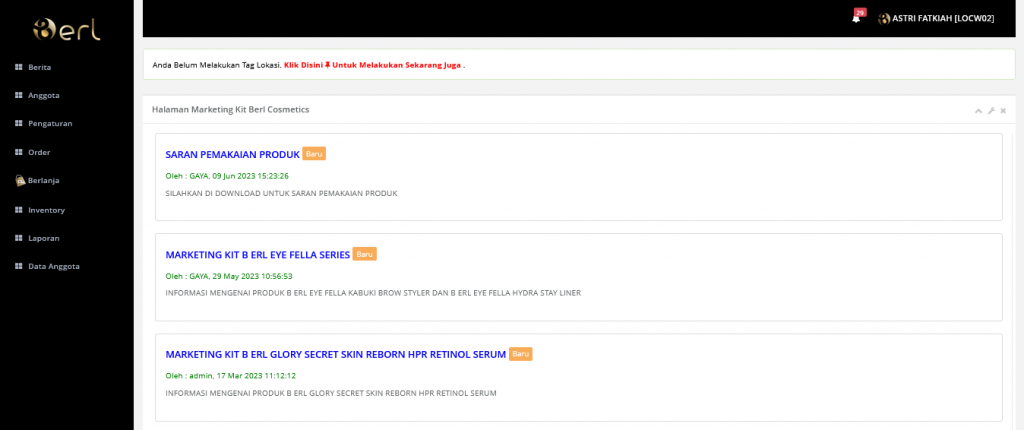 Marketing Kit berisi media promosi yang menyediakan informasi mengenai produk B erl Cosmetics.