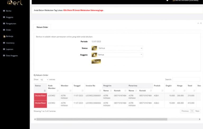 Pada Rekam Order, Reseller bisa melihat rekam pemesanan online yang telah dilakukan